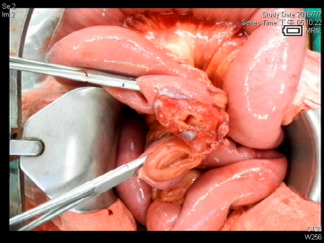 一般外科的黃醫師決定把整個腸子請出來檢查,結果一共有一百五十公分的腸子須要剪除。